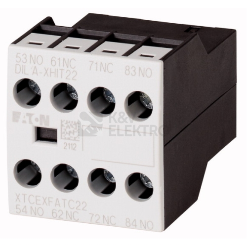 Pomocný spínač pro čelní montáž s kontakty s nuceným vedením, montáž bez nářadí, vysoké provedení ke kombinaci se zásuvnou kombinační technikou, spojovacími můstky