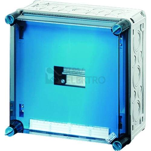 Skříně pro montáž kombinací energetických spínačů do 630 A nebo jako jednotlivé skříně. Z vysoce kvalitního polykarbonátu s ochrannou izolací. Stěnové průchodky s velkými otvory pro elektrické připojení skříní. Kabelové vstupy na všech stěnách skříní přes metrické předlisy nebo montážní příruby. Skříně pro upevnění na stěnu také pomocí vnějších patek nebo s montážními lištami. Jističové skříně s 6 modulovými jednotkami pro jističe hlavního vedení. S 1pólovou odbočovací svorkovnicí z hlavního vedení pro měděný vodič. S plombovatelnou krycí deskou ochrany proti náhodnému dotyku, s uzavíratelným krycím páskem pro uzavření nevyužitých vylamovacích výřezů v krycí desce pro modulové přístroje a popisovými štítky pro identifikaci proudových obvodů. Průhledné víko, uzávěry víka pro ruční ovládání.