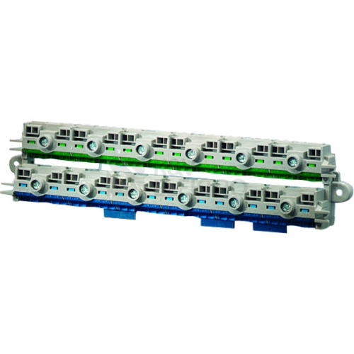 KV-PE- a N-svorka pro malé rozváděče s 12 modulovými jednotkami na řadu a KV-prázdné skříně. Technologie zásuvných svorek FIXCONNECT. N oddělitelný, až do 4 různých potenciálů.
