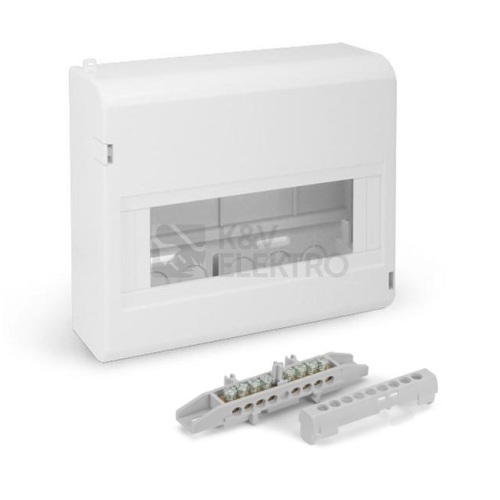 Kryt jističe 9 MB se svorkou E2x4 je jednořadá nástěnná rozvodnice české značky Elcon, která je plombovatelná. Kryt je určený k montáži na zeď nebo PREMIX desku, kde jej můžete využít například jako náhradu starších černých jističů SEZ Krompachy, či do starých elektroměrových rozvaděčů. Malá rozvodnice Elcon 9MB se svorkovnicí E2x4 je bílá a její stupeň krytí je IP40. Má 1 řadu se šířkou pro 9 modulů. Tento kryt jističe lze plombovat a jeho vnější rozměry jsou 180 mm (šířka), 160 mm (výška) a 71 mm (hloubka). Je určený k upevnění přístrojů podle DIN EN 50 022. Podívejte se i na další kryty jističe Elcon, nebo vybírejte z klasických modulových rozvodnic a desek PREMIX. Nabízíme také další druhy rozvaděčů: elektroměrové rozvaděče, stavební rozvaděče či datové rozvodnice. Pořídit u nás můžete i elektroměry, jističe, proudové chrániče a další modulové přístroje. O společnosti Elcon Elcon je český výrobce elektromateriálu s více než 20letou historií. V našem sortimentu najdete například rozvodnice a svorky Elcon. Vybírejte ze všech výrobků Elcon na našem e-shopu.
