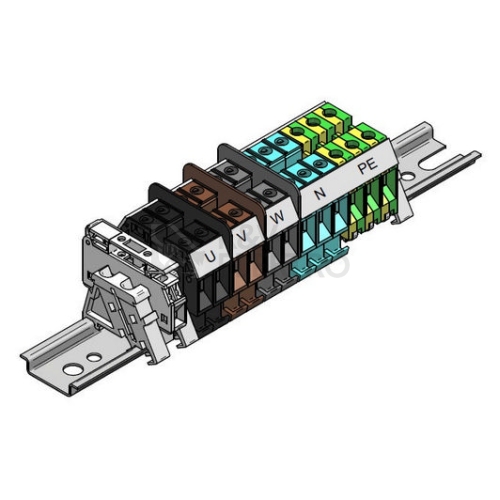 Odbočovací pětivodičová svorkovnice s jedním držákem pojistky RSP 4. Složení svorkovnice: 9 x RSA 10 A 3 x RSA PE 10 A Rozměry: A [mm] 55 B [mm] 53 C [mm] 160 C1 [mm] 40 L [mm] 250 • Materiál izolantu polyamid PA 6, hořlavost V0 dle UL 94, bez halogenů • Nadstandardní povrchová úprava spojovacích i elektrovodných částí • Možnost připojení hliníkových i měděných vodičů • Vodivě spojené svorky PE s lištou DIN • Krytí IP 20 bez nutnosti používání příslušenství či krytů (*) • Oddělení fázových svorek středovými přepážkami • Svorky v sestavách svorkovnic jsou označeny popisem • Certifikace státní zkušebny a soulad s normami EU