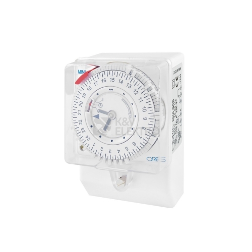 Hodiny spínací MINI QRD, analogové, denní, 108x72mm, 230V 50-60Hz, záloha chodu 100 hodin, na panel, krytí IP20