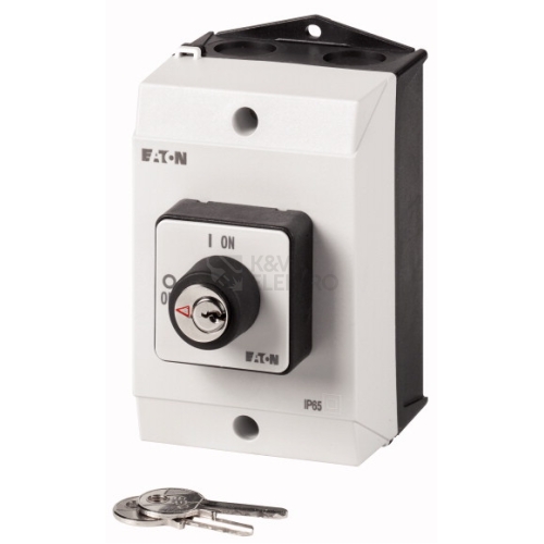 Vačkové spínače podle ČSN/EN60947, konstrukční velikost T0, ve skříňce pro povrchovou montáž, přední štítek ca. 48x48, stupeň krytí IP65, s ovládáním klíčem, jmenovitý trvalý proud Iu 20 A, jmenovité provozní napětí Ue 690V, příslušenství k dodání podle údajů v katalogu Vačkové spínače T. Konstrukční formy všeobecně: skříňky pro povrchovou montáž z izolačního materiálu, montáž, centrální upevnění, základní montáž, montáž do rozváděče IVS
