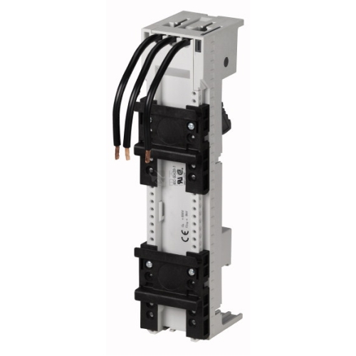 45mm sběrnicový adaptér pro 60mm systém přípojnic, dvě nosné lišty, tři prefabrikovaná vedení (AWG14 / 2,5 mm²) k připojení ke spínacímu přístroji s pružinovými svorkami v oblasti napájení, použitelný pro spouštěče motorů PKZM0-...-C resp. pro kombinace spouštěče motorů s PKZM0-...-C a výkonové stykače DILM(C)7 až DILM(C)15, jmenovitý povozní proud: 16A, jmenovitý povozní proud podle UL508: 12 A