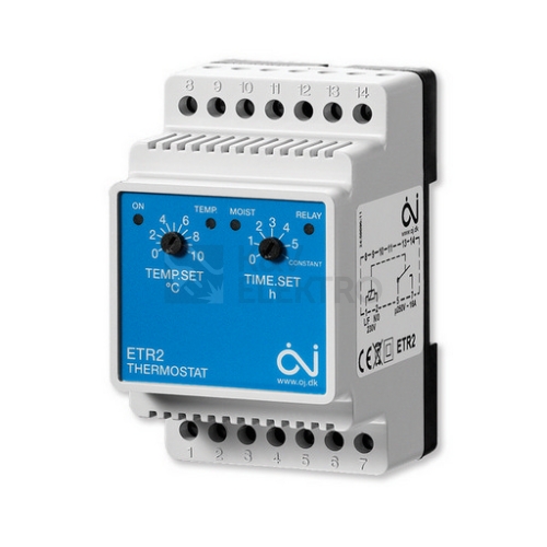 Regulátor pro zimní aplikace, regulátor pro ochranu okapů a venkovních ploch, kontroluje přítomnost teploty + vlhkosti, 230V, 16A, montáž na DIN