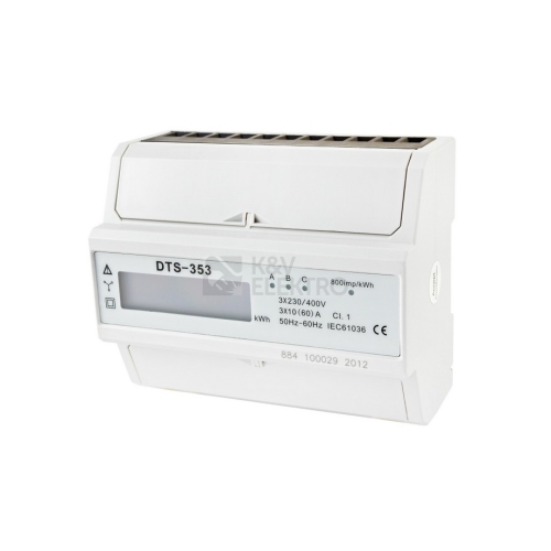 Podružný 3-fázový 1-tarifní digitální elektroměr pro přímé informativní měření DTS 353-L 60A, 7mod.