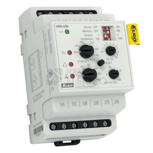 Hlídací relé s kompletní kontrolou se používá pro 3-fázovou kontrola v síti, hlídání a ochranu sítě, regulaci napětí z generátoru nebo vodní elektrárny. POPIS Ve 3-fázových sítích hlídá a kontroluje: a) Napětí ve dvou úrovních (přepětí a podpětí) b) Asymetrii fází c) Pořadí fází d) Výpadek fáze Nastavitelná funkce PAMĚŤ – pro návrat z chybového do normálního stavu je třeba stisknout tlačítko RESET Funkce druhého relé (samostatně/paralelně) Pevná prodleva T1 (200ms) a nastavitelná prodleva T2 (0.1 – 10 s) pro eliminaci krátkodobých výpadků a špiček. Hlídací relé ve dvou provedeních: HRN-43: určeno pro obvody bez nulového vodiče (3 x 400 V) HRN-43N: určeno pro obvody s nulovým vodičem (3 x 400 V/230 V) TECHNICKÉ PARAMETRY napájecí napětí AC 230 V, AC 400 V, AC/DC 24 V, galvanicky oddělené horní úroveň (Umax): HRN-43: 240 – 480 V HRN-43N: 138 – 276 V Spodní úroveň (Umin): 35 – 99% hlídaného napětí výstupní kontakt: 2x přepínací 16 A/250 V AC1 (AgNi, 2500 VA) v provedení 3-MODUL, upevnění na DIN lištu