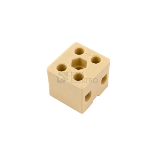 Svorkovnice keramická AK 2/15 ST (2-1602-2/ST), 2pólová, 2x10mm2, 32A, trvalá teplota použití: 350°, materiál: steatit, barva: okrová, průřez pevného vodiče od 2,5mm2 do 10mm2, průřez slaněného vodiče v dutince od 2,5mm2 do 6mm2
