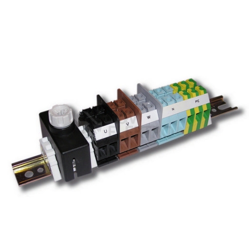 Odbočovací, pětivodičová svorkovnice s jedním držákem pojistky E14. Složení svorkovnice: 9 x RSA 16 A 3 x RSA PE 16 A Rozměry: A [mm] 75 B [mm] 73 C [mm] 205 C1 [mm] 40 L [mm] 300 • Materiál izolantu polyamid PA 6, hořlavost V0 dle UL 94, bez halogenů • Nadstandardní povrchová úprava spojovacích i elektrovodných částí • Možnost připojení hliníkových i měděných vodičů • Vodivě spojené svorky PE s lištou DIN • Krytí IP 20 bez nutnosti používání příslušenství či krytů • Oddělení fázových svorek středovými přepážkami • Svorky v sestavách svorkovnic jsou označeny popisem • Certifikace státní zkušebny a soulad s normami EU