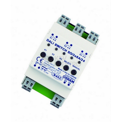 Převodníky signálu pro LMS. Vlastnosti produktu: Spínací výstup ovládaný prostřednictvím DALI pro nestmívatelné žárovky, QT, OT, PT, HT předřadníky. 3 nezávislé reléové kontakty. Povolená zátěž spínacího kontaktu: Ohmická zátěž 6 A. Napájecí napětí: 24 V DC. Plovoucí kontakty. Výhody produktu: Možnost adresování přes systém DALI. Druh použití: Průmysl. Vhodné pro použití v kombinaci se všemi předřadníky POWERTRONIC®. Renovace historických budov. Výbava / příslušenství: Možnost použití se všemi řídicími jednotkami DALI. Je nutné napájení 24 V (např. PS 30).