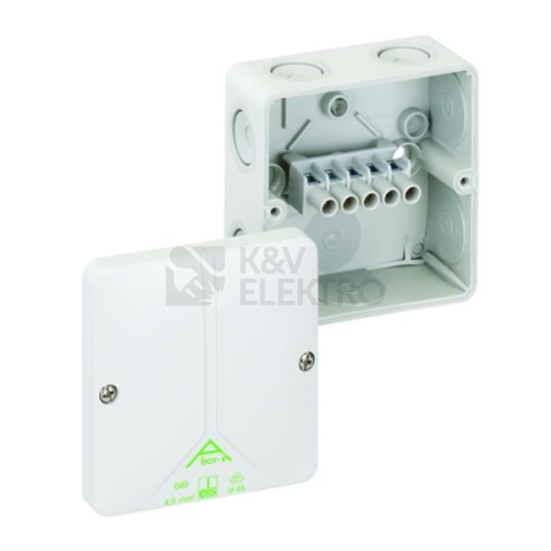 Spojovací krabice, se stupněm krytí IP65, Jmenovitý průřez 4mm², Ui=690V AC, Certifikováno podle VDE (DIN EN 60670-1/-22 (VDE 0606-1/-22)), DLG (odolnost vůči čpavku), DNV (Třída: Lodě & offshore zařízení), Samotěsnicí měkká přívodní membrána, M20, Rozsah těsnění 2-16mm, (1 ze zadu, 7 z boku), Vnitřní místa pro připevnění, pro instalace v průmyslovém prostředí a chráněném venkovním prostředí, šedá, s šroubovou svorkou, 5-pólovou-2,5/4mm² (4 x 1,5² / 4 x 2,5² / 4 x 4²), Rozměry: 93 x 93 x 55mm