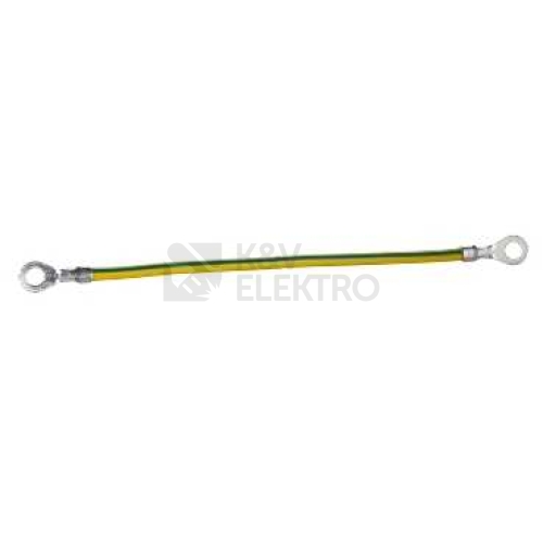 Zemnící vodiče - průřez 6mm² pro Spacial. Délka 160 mm, otvor oka 8,3 mm. Víceúčelový uzemňovací vodič. Upevnění maticí a podložkou na místě zemní připojení. Mosaz a slitina mědi pro svorku, PVC zelená a žlutá pro pouzdro. 1 vodič, sada 10.