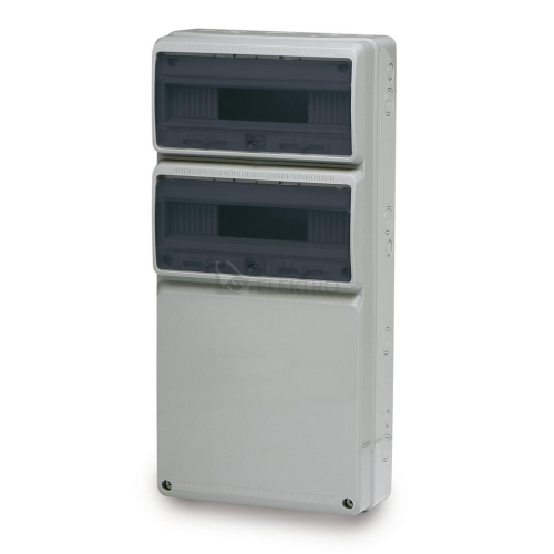 Plastová skříň AcquaCOMBI 3977 s prostorem pro umístění zásuvek a ovládacích přístrojů, ve vyšším krytí IP65, 32mod., rozměry: 685x330x155mm, svorkovnice PE/N součástí, montáž na omítku, průhledná dvířka, barva: světle šedá.Plastová skříň AcquaCOMBI 3977 ve vyšším krytí IP65, rozměry: 685x330x155mm, (výška x šířka x hloubka), modulový prostor 32mod., IK08, materiál ABS plast, zkouška žhavou smyčkou 650°C, bezhalogenová a UV odolná, montáž na povrch, barva: světle šedá, rozsah teplot -25°C +85°C, aplikované normy: EN 62208, balení: 1ks (fólie), polykarbonátová průhledná dvířka, 2ks PE svorkovnice součástí (2x16 mm2 + 4x10 mm2 ) / 2ks N svorkovnice součástí (2x16 mm2 + 4x10 mm2 ), stěny s předlisovanými vstupy pro vyvrtání vstupního otvoru a následného osazení příslušnou vývodkou, schopnost rozptylu tepla: 64W, dokoupitelné příslušenství: kovový zámek 3900, průchodka pro spojování skříní 3903, držadlo 3917.
