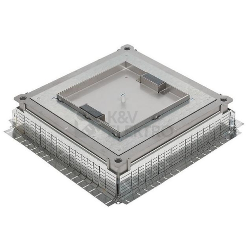 Kovové instalační krabice do betonové podlahy umožňují vytvořit propojovací místo nebo přípojné místo pracoviště v betonové podlaze (za současného použití podlahové krabice). Výškově nastavitelné od 56 do 140 mm pomocí 4 stavitelných patek v rozích instalační krabice, přizpůsobených pro použití akumulátorového šroubováku. Boční krycí panely přizpůsobitelné pro spojení s různými rozměry protahovacích kanálů. Dodávány včetně ochranného krytu, který se po instalaci nahradí plným krytem nebo montážním krytem pro podlahové krabice