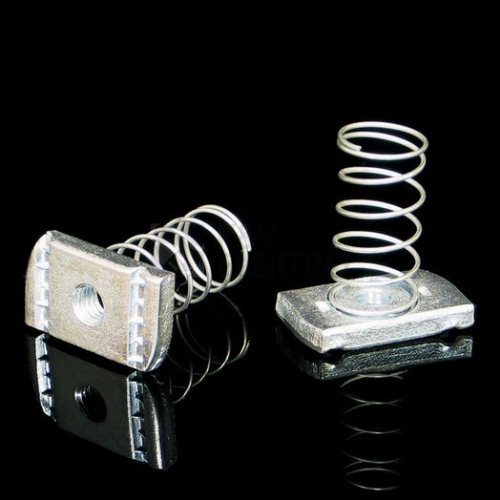 Posuvná matice s pružinou pro montáž výložníků DL, DS, DT na stropní profily SPL, SPS, průměr matice M8