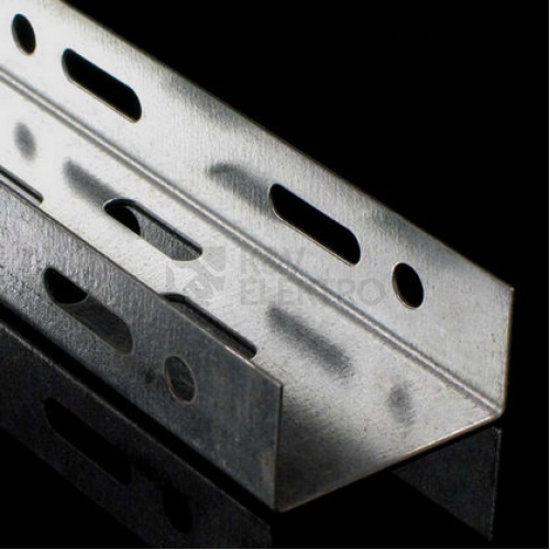 Kabelový žlab KZ 35x50 z plechu tloušťky 0,75mm pro spojení pomocí spojky, v povrchové úpravě sendzimir, děrovaný, opatřený embosy pro zvýšení pevnosti a tuhosti.
