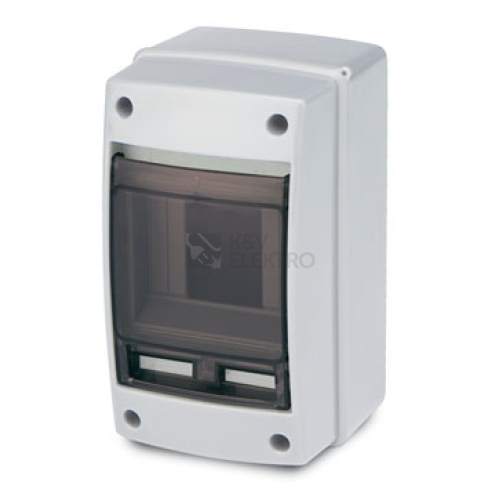 Plastová rozvodnice ve vyšším krytí IP65 pro povrchovou montáž: FAMATEL ACQUA 3902-T, 1x2/4mod., šedá/kouřové okénko Hlavní přednosti: Kompaktní rozměry Kvalitní zpracování PE/N svorkovnice součástí Dostatek prostoru pro kabely Bezhalogenový materiál (ABS / polykarbonátová dvířka) Další popis: rozměry: 170x100x100mm (výška x šířka x hloubka) 1x2/4mod.(TE) IK07 plastová, materiál ABS zkouška žhavou smyčkou 650°C bezhalogenová a UV odolná montáž na povrch barva: světle šedá rozsah teplot -25°C + 85°C aplikované normy: EN 62208 balení: 1ks (fólie) polykarbonátové průhledné okénko PE svorkovnice součástí (2x16 mm2 + 4x10 mm2 ) / N svorkovnice součástí (2x16 mm2 + 4x10 mm2 ) hladké boky (stěny) - pro vyvrtání otvoru a osazení vývodkou schopnost rozptylu tepla: 8W