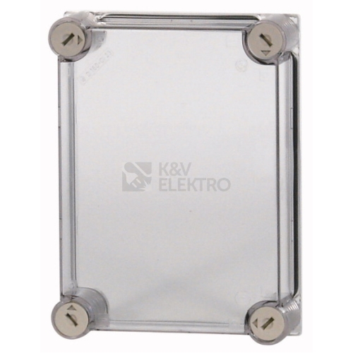 Kryt transparentní, stupeň krytí IP65, patentované upevňovací šrouby víka s integrovaným vyrovnáním přetlaku, upevňovací šrouby s možností plombování, průchozí zapěněné těsnění, vestavná hloubka s montážním plechem=150 mm, použitelný pro dolní díly CI E, X a V, provedení uzávěrů: ovládání pomocí nástroje (nepřístupné pro laiky)