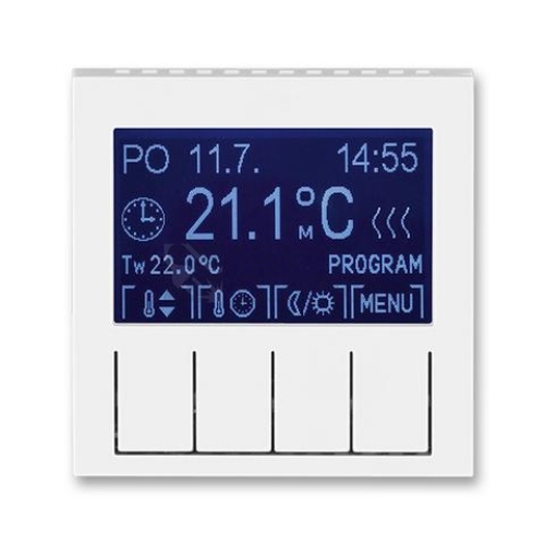 Šetřete náklady na topení a regulujte topnou techniku za pomoci termostatu. Vybírejte z termostatů bezdrátových, dotykových i s otočným knoflíkem či tlačítkem. Termostat univerzální programovatelný (ovládací jednotka) Ovládací jednotka (nutno použít spínací přístroj). Volitelná funkce prostorového, podlahového nebo kombinovaného termostatu. Nastavitelné teploty: 0 °C až +50 °C Provozní režimy: manuální, automatický (1 základní nebo 3 rozšířené časové programy), dovolená Základní program: volba ze 2 přednastavených teplot - komfortní a útlumové Rozšířený program: navíc možnost libovolně nastavitelné teploty Časový program: max. 70 časových značek s rozlišením 5 minut, pro jednotlivé dny v týdnu nebo Po-Pá, So-Ne, Po-Ne. Další funkce: softwarové vypnutí, volba topení nebo chlazení, jas a kontrast displeje, zámek tlačítek, volba teplotního snímače, minimální a maximální limitní teplota, vnější ovládání kontaktem, adaptivní regulace, omezení nastavitelných teplot, počítadlo provozních hodin, protimrazová ochrana, ochrana ventilů, inverze funkce výstupu, automatický přechod zimní/letní čas, volba jazyka (CZ, EN, RUS) Rezerva chodu: cca 90 dní (dobíjecí Li článek) Pracovní teplota: 0 °C až +50 °C Snímač teploty pro podlahové vytápění: 3292U-A90100 (není v dodávce) Design: Levit® Barva: bílá Podívejte se i na další termostaty ABB a ostatní termostaty z naší nabídky. ABB Levit je oblíbená řada domovních přístrojů, u které oceníte moderní vzhled s ostrými hranami i téměř nekonečné barevné možnosti. Rámečky, kryty vypínačů i zásuvky mají dvě barevné vrstvy a celkově můžete vybírat z 14 barevných variant, které lze navzájem kombinovat. Sáhnout můžete jak po decentních odstínech bílé, tak po moderních metalických odstínech i sytých, intenzivních barvách! Na našem e-shopu najdete pestrou nabídku přístrojů ABB Levit – vypínače, zásuvky, rámečky Levit, termostaty i venkovní vypínače a zásuvky v krytí IP44. Podívejte se na další řady domovních přístrojů ABB. O společnosti ABB ABB je švédsko-švýcarská nadnárodní korporace působící ve více než 100 zemích světa. Tato přední světová společnost s více než 120letou tradicí působí především v oblasti energetiky a automatizace. V Česku formálně působí od roku 1992 a zaměřuje se především na kvalitní zásuvky a vypínače. V našem řadu najdete celou řadu produktových řad designových i praktických domovních přístrojů. Kromě výše zmíněné nejúspěšnější série zásuvek a vypínačů ABB Tango doplňují kolekci funkčních vypínačů a zásuvek řady ABB Classic a ABB Swing. Zajisté také oceníte nádherné vypínače a zásuvky ABB Solo Carat, ABB Time, ABB Levit a ABB Impuls či originální design a klasický materiál porcelánových zásuvek a vypínačů ABB Decento. Pro venkovní využití jsou určené ABB Praktik, Variant a Garant. Kromě tohoto sortimentu najdete v naší nabídce také modulové rozvodnice ABB či stmívače. Prohlédněte si kompletní výběr výrobků ABB na našem e-shopu. ##VIDEO:https://www.youtube.com/embed/KCdAu_l9SBU##