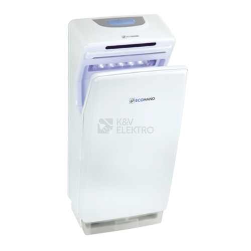 Rychlý, hygienický a energeticky úsporný osoušeč rukou ECOHAND používá výkonný vysokorychlostní proud čistého vzduchu k odstranění kapek z rukou (během 10 s)