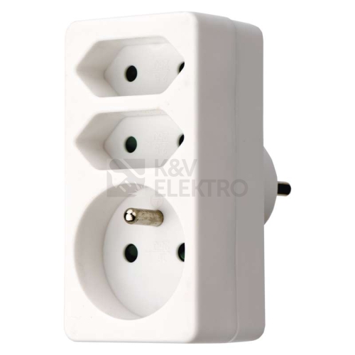 Rozbočovací zásuvka 2x plochá + 1x kulatá, bílá