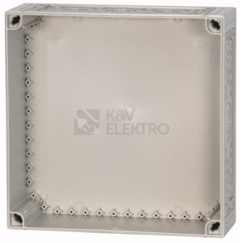 Skříňka E, material: Polykarbonát, odolná proti nárazům, metrické vylamovací otvory ve všech bočnicích, vylamovací, přívod vedení nahoře a dole vždy 1xM50/32, 2xM40/25, 8xM25/16 a 2xM20, po straně vždy=1xM63/40 a 6xM25/16 a 10xM20 a 2xM16, RAL 7032, možnost přímé montáže na stěnu bez dalšího příslušenství