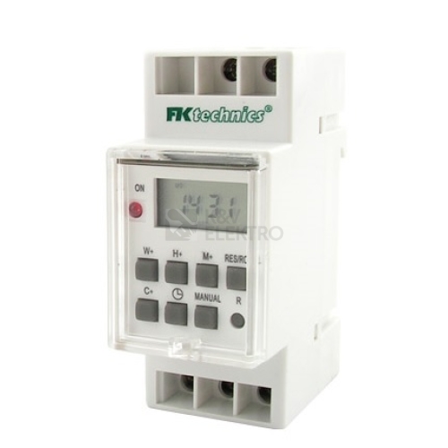 Pod označením FKGE2 se ukrývají digitální spínací hodiny s možností týdenního nastavení spínání připojených spotřebičů. Jejich instalace a následné nastavení je velice jednoduché, veškeré podrobnosti lze vyčíst z přiloženého návodu. Nejkratší spínaná doba je 1 minuta a nejdelší činí 7 dní. Umožňují také využít až 8 programů na týden vč. programu náhodného spínání. O zálohu nastavených hodnot se v případě výpadku napájení postará vestavěný NiMH akumulátor.