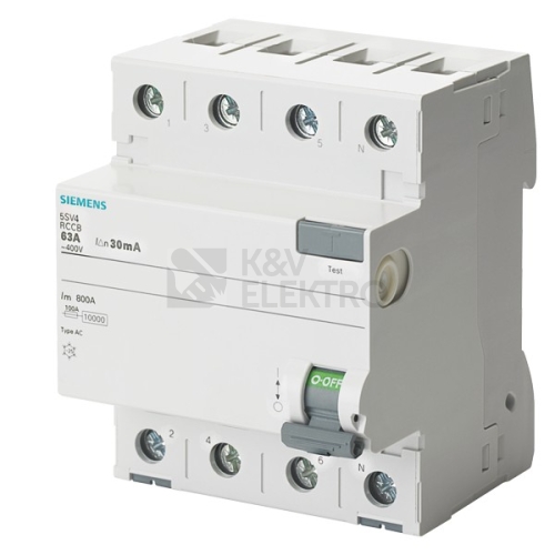 Residual current operated circuit breaker, 4-pole, Type AC, In: 63 A, 30 mA, Un AC: 400 V