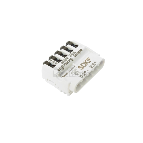 Svorka krabicová páčková SDKF 5 - univerzální (pevný i laněný vodič), bezšroubová, 5x0,2-2,5mm2, bílá