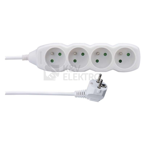Bílý prodlužovací přívod, 4 zásuvka s délkou 1,5 m a průřezem vodiče 1 mm2. Vhodný pro maximální zátěž 10 A max. Prodlužovací přívod 1,5 m na 230 V slouží k prodloužení elektrické energie tam, kam pevná zásuvka nedosáhne.