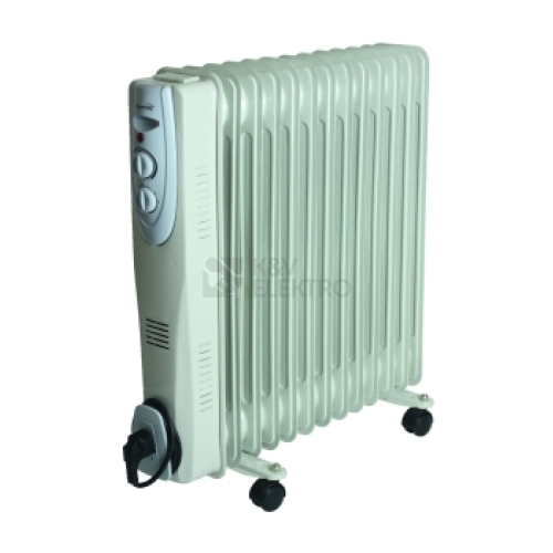 Technické parametry: 13 článků 3 stupně ohřívání 1000 W / 1500 W / 2500 W Regulovatelný termostat Ochrana proti přehřátí, ochrana proti převrhnutí Snadno přemístitelný pomocí koleček Zapuštěná rukojeť Držák kabelu Rozměry: 125 (240) x 600 x 590 mm Napájení: 230 V / 50 Hz