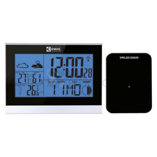 Meteostanice zobrazuje hodiny, datum, budík s funkcí opakovaného buzení, předpověď počasí, údaje o vnitřní a venkovní teplotě, vnitřní vlhkosti, fázi měsíce. Možnost připojit až 3 čidla, budík s funkcí snooze.
