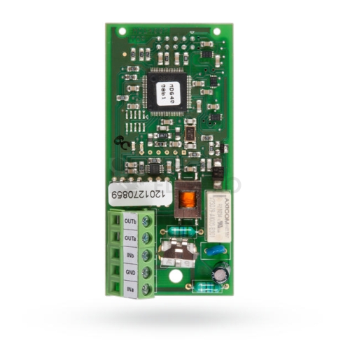 JA-190X, modul telefoního komunikátoru Ústředna s tímto modulem předává poplachové hlasové zprávy, komunikuje s pultem centrální ochrany a umožňuje vzdálený přístup. Parametry: Rozhraní - analogové = ETS 300 001, ČSN EN 301 437, TBR 21, Prostředí - třída = II vnitřní všeobecné (-10°C až +40°C), Způsob telefonní volby = DTMF, Detekce přítomnosti telefonní linky = volitelný parametr, Počet vytáčených čísel pro hlasové zprávy = 8 (s JA-101K) / 15 (s JA-106K), Počet vytáčených čísel pro
