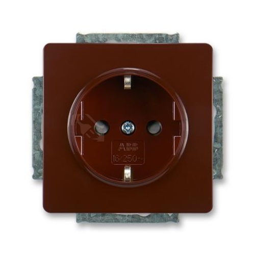 Zásuvka jednonásobná s ochr. kontakty (podle DIN), s clonkami, hnědá