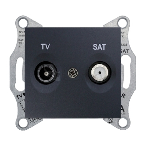 Sedna, TV-SAT průběžná zásuvka 4dB, graphite. typ produktu nebo součásti: zásuvka TV/SAT - použití zařízení: podpora mediálních zařízení - typ TV zásuvky: průběžná zásuvka - sestava zařízení: nosný prstenec.