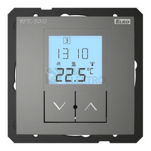 Polosestava. Bezdrátový regulátor v designu LOGUS90 měří teplotu prostoru vestavěným senzorem a na základě nastaveného programu posílá povel k ovládání vytápění/chlazení. POPIS Regulátor teploty lze použít dvěma způsoby: a) Pro regulaci přídavného zdroje vytápění (přímotop, olejový radiátor, sálavý panel) s multifunkčními spínacími prvky RFSA-6x, RFUS-61, RFATV-1 nebo RFSC-61. b) Pro regulaci podlahového vytápění, kdy interní senzor snímá teplotu prostoru a na základě nastavené hodnoty ovládá teplotní prvek RFSTI-11B, který externím senzorem hlídá kritickou hodnotu podlahy. (plast, sklo, dřevo, kov, kámen). Plochá zadní strana přístroje jej umožňuje umístit kdekoliv v prostoru, kde chcete měřit teplotu. TECHNICKÉ PARAMETRY Bateriové napájení 2xAAA (1,5 V), s životností až 1 rok dle počtu ovládaných aktorů. Teplotní rozsah: 0°C až +55°C. Dosah až 100 m (volné prostranství), v případě nedostatečného signálu mezi ovladačem a prvkem použijte opakovač signálu RFRP-20. Komunikační frekvence (868MHz, 866MHz, 916MHz, 922MHz) s obousměrným protokolem RFIO nebo RFIO2. RFIO2 je inovovaný bezdrátový komunikační protokol systému iNELS RF Control, který přináší větší stabilitu a eliminuje kolizi signálů mezi jednotlivými prvky. V provedení vypínače s montáží do instalační krabice. Podsvícený LCD displej zobrazuje aktuální a nastavenou teplotu, stav sepnutí (ON/OFF), stav baterie, den v týdnu a aktuální čas. Možnost nastavení denního/týdenního automatického programu ovládání. Manuální ovládání pomocí tlačítek na prvku. Měřenou teplotu posílá do systémového prvku v pravidelných 5 minutových intervalech. Při náhlé změně teploty vyšle signál do 1 minuty. Barevné kombinace teplotního prvku v designu rámečků Logus90