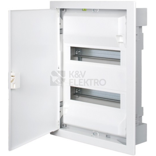 pro zapuštěnou montáž , 850°C neprůhledné plechové dveře, počet řad 2, počet modulů v řadě 14, krytí IP30, PE+N, barva bílá, materiál : ocel-plast