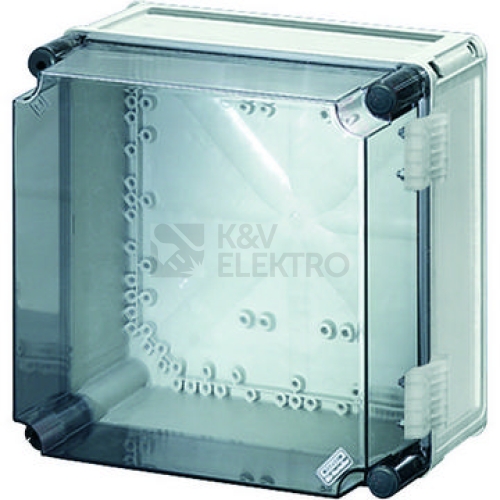 Skříně pro montáž kombinací energetických spínačů do 630 A nebo jako jednotlivé skříně. Z vysoce kvalitního polykarbonátu s ochrannou izolací. Stěnové průchodky s velkými otvory pro elektrické připojení skříní. Kabelové vstupy na všech stěnách skříní přes metrické předlisy nebo montážní příruby. Skříně pro upevnění na stěnu také pomocí vnějších patek nebo s montážními lištami. Prázdná skříň se závěsným průhledným víkem. Montážní rozměry š 275 mm x v 275 mm x h 195 mm. Pro montáž přístrojů na montážní desku nebo na nosnou lištu DIN. Max. vestavná hloubka při zabudované montážní desce 191 mm, při zabudované nosné liště 180 mm. Uzávěry víka otevíratelné pomocí nástroje.