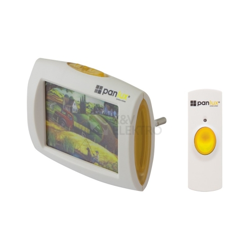 Dětský bezdrátový zvonek PANLUX Převážně bílá barva, Tlačítko a postranní části jsou žlutéOriginální bezdrátový zvonek do zásuvky Vhodné i jako noční LED přisvícení do dětského pokojíčku