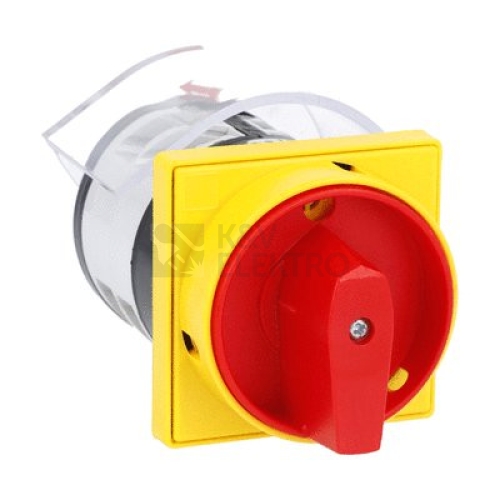 Otočné vačkové spínače, Řada GN, Provedení U25, Čelní montáž se žluto-červeným uzamykatelným ovladačem, Spínače ZAP-VYP, Čtyřpólové, 2 patra, Schéma 92, Jmenovitý proud 32A