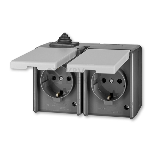 Zásuvka dvojnásobná IP44, s ochr. kontakty (podle DIN), s víčky, šedá