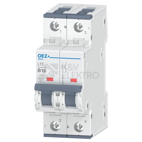 In 16 A, Ue AC 230/400 V / DC 144 V, charakteristika B, 2pól, Icn 6 kA
