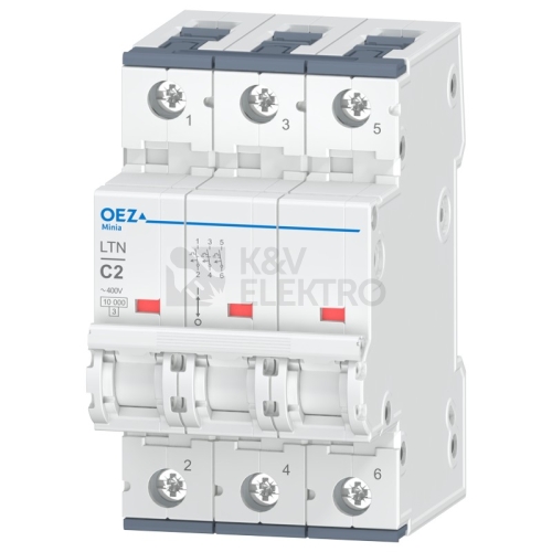 In 2 A, Ue AC 230/400 V / DC 216 V, charakteristika C, 3pól, Icn 10 kA