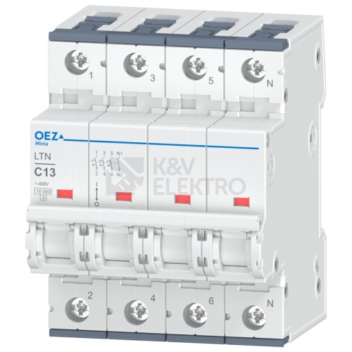 In 13 A, Ue AC 230/400 V / DC 216 V, charakteristika C, 3+N-pól, Icn 10 kA