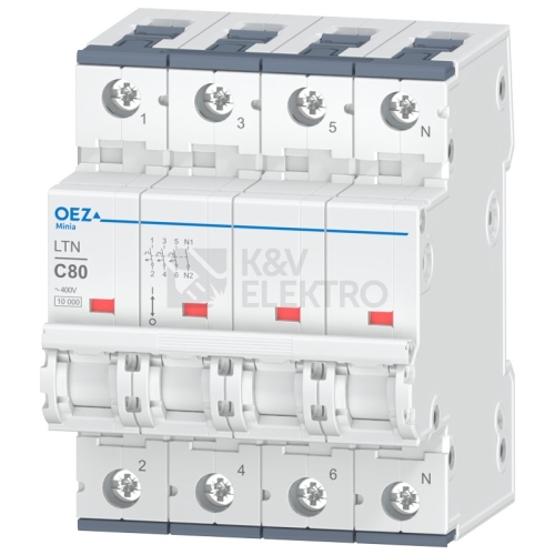 In 80 A, Ue AC 230/400 V / DC 216 V, charakteristika C, 3+N-pól, Icn 10 kA
