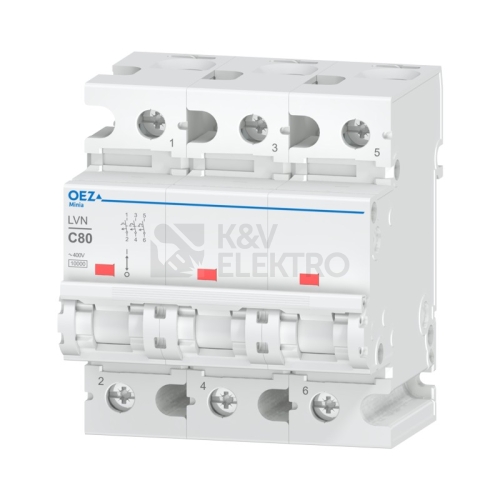 In 80 A, Ue AC 230/400 V / DC 216 V, charakteristika C, 3pól, Icn 10 kA