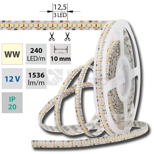 LED pásky jsou moderním osvětlovacím prvkem, podporujícím netradiční metody osvětlení interiérů a exteriérů. LED jsou moderní světelný zdroj použitelný v mnoha oborech ať již v průmyslu, reklamě nebo domácnosti. Flexibilní LED pásek navodí příjemnou atmosféru domova na schodištích v obýváku, v ložnici, v kuchyňské lince. LED pásek SMD3528, 2800-3100K (teple bílá), 19,2W, 240LED, 1536lm, segment 12,5mm, 3LED/segment, IP20, DC 12V, životnost 35000h, šíře 10mm, bílý PCB pásek, max. délka pásku při jednostranném zapojení: 5m, opatřen samolepící páskou 3M, nutné vždy umístit na chladič. Hledáte LED pásek v teplé bílé? Nebo dáváte přednost neutrální či studené bílé barvě světla? V nabídce máme také multibarevné RGB LED pásky. Podívejte se na všechny LED pásky v našem sortimentu i ostatní světelné zdroje.