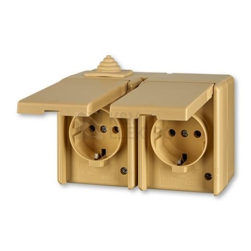 Zásuvka dvojnásobná IP44, s ochr. kontakty (podle DIN), s víčky, béžová