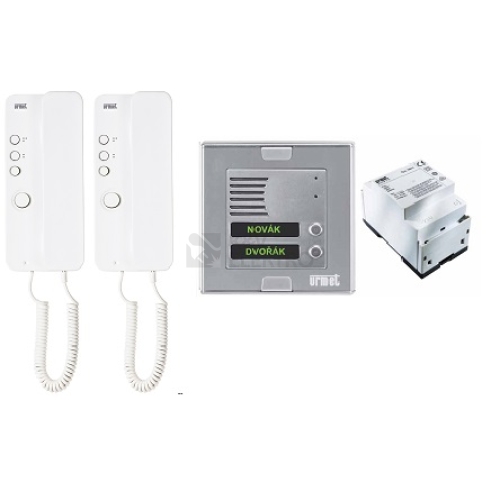 Souprava domovního telefonu pro 2 účastníky Analogový systém 4+n. Panel SINTHESI S2 (1148) z eloxovaného hliníku. Instalace pod omítku. Souprava obsahuje: Kompletní vstupní panel s 2 tlačítky a hlasovou jednotkou řady 1148 Zdroj 786/11 Dva domovní telefony 1150/1 Možnost rozšířit o příslušenství: Kryt proti dešti 1158/611 Modul pro přesměrování hovorů na iOS nebo Android zařízení lze dokoupit modul 9854/58
