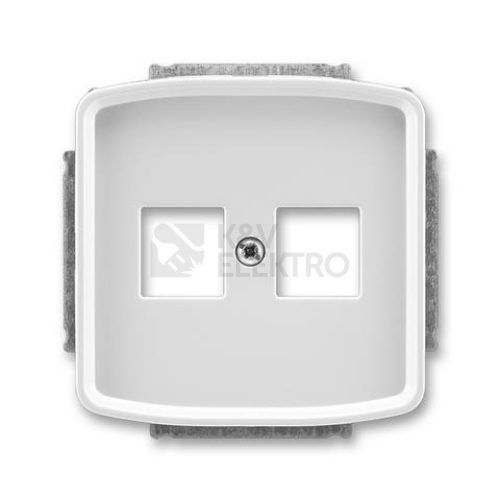 Kryt zásuvky komunikační s plochým designem S upevňovacím třmenem. Pro upevnění dvou komunikačních zásuvek typu Modular-Jack (keystone), záslepek nebo reproduktorových svorek bez použití nosné masky. Rozměry otvorů: 19,4 × 14,8 mm Design: Tango Barva: šedá